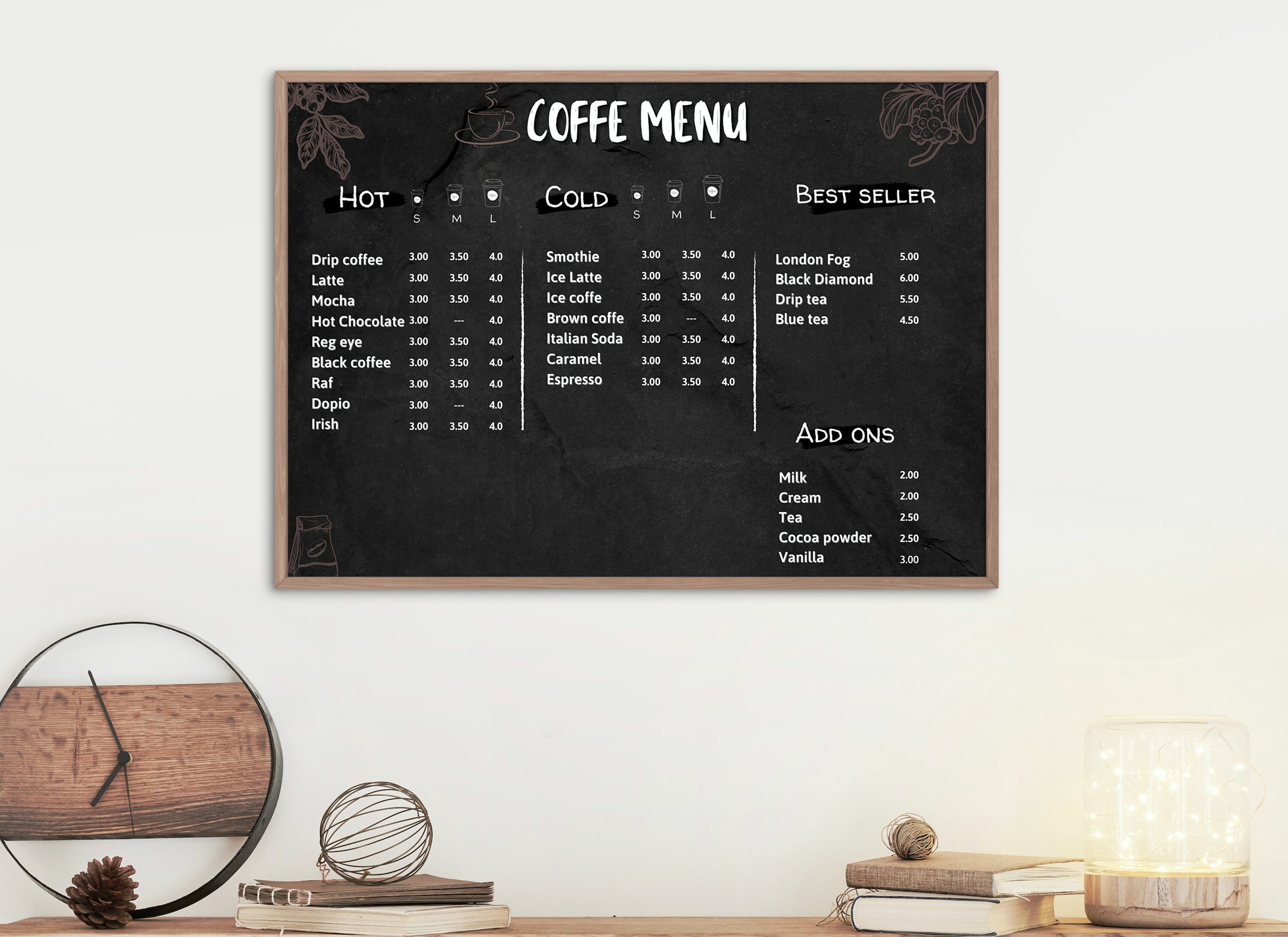 Mood Media is an End-to-End Provider. Ad Create eye-catching imagery with thousands of professionally designed templates. Web Use these coffee shop menu boards and to up sell customers improve dining.